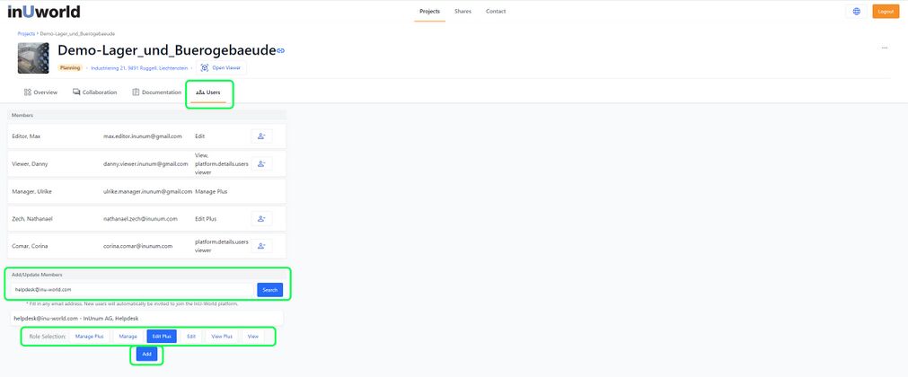 | 9 | Add User to Project | x | x | x | x | x | ||