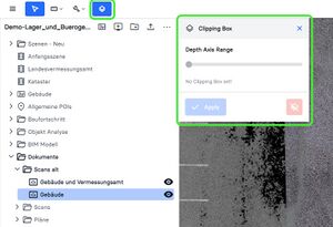 The Clipping Box allows you to crop the point cloud, enabling you to reduce the visibility of points outside the marked area or hide them completely, which facilitates editing or analyzing the point cloud.