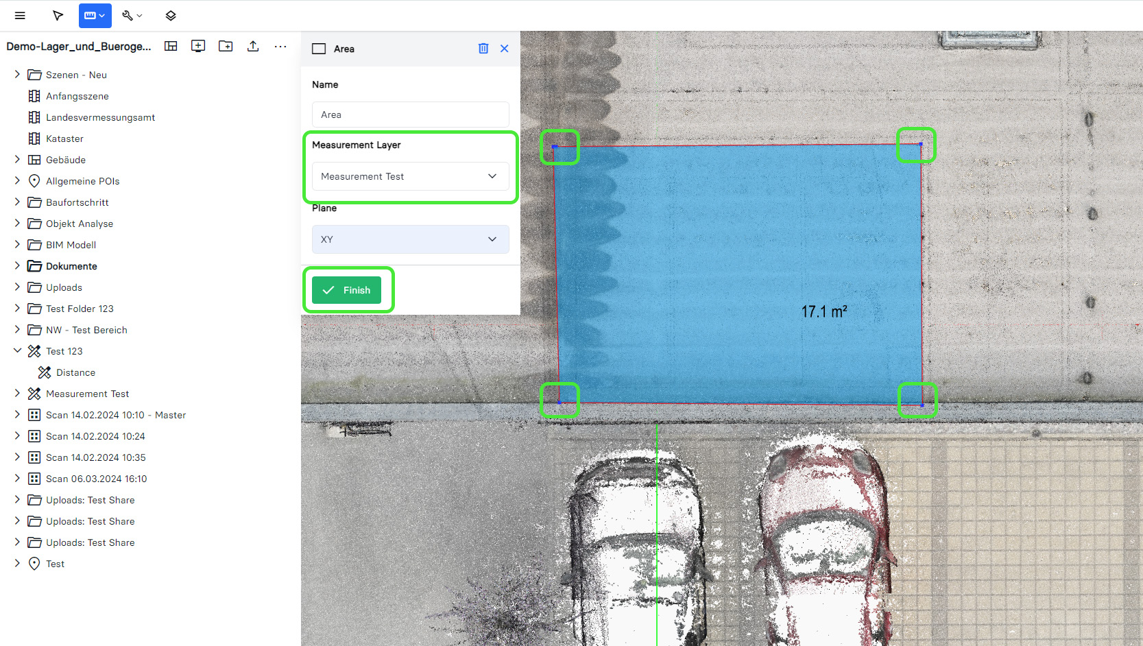 InUworld-Area Measurement Plane highlighted
