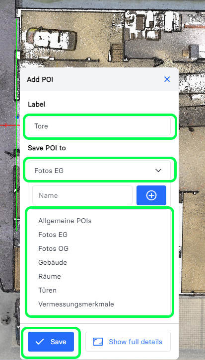 InUworld-POI Layer Choose from existing one highlighted