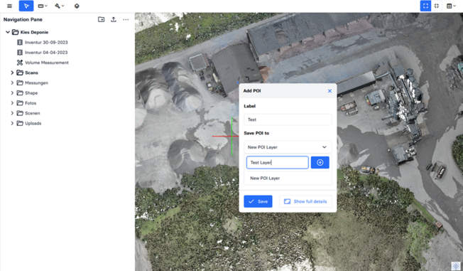 In the POI menu, you can choose to either create a new layer or select an existing one. Simply open the dropdown menu under "Save POI" to: