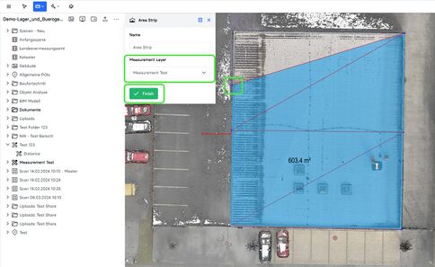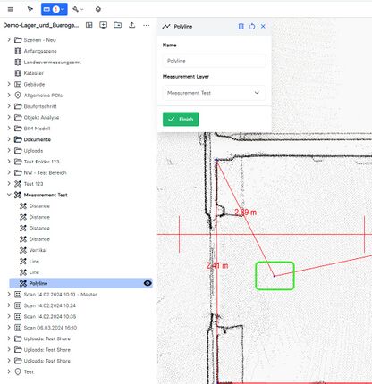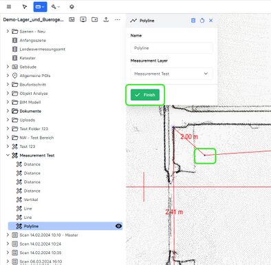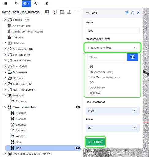- You can proceed with additional measurements or save the current one by clicking on "Finish"