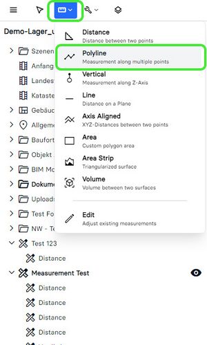 A Polyline measurement is a measurement of the shortest path along a selection of specified points.