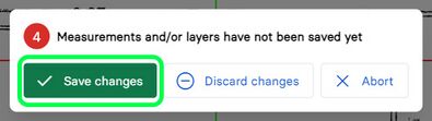 - Click on the red dialog box stating "Measurements and/or layers have not been saved yet"