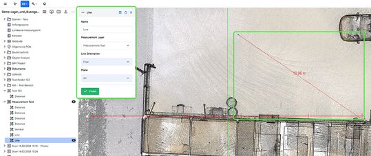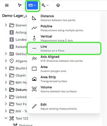 A Line measurement is a measurement on a user-defined plane that calculates the distance between points of interest.