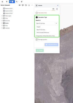 - Choose the Calculation Type (example shows "Best Fit Surface" calculation type)