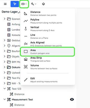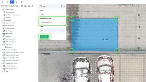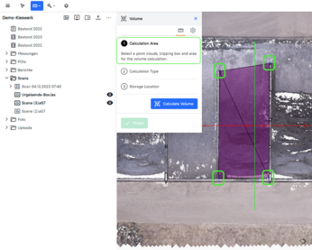 - Indicate the area to be measured by selecting at least 3 points on the point cloud