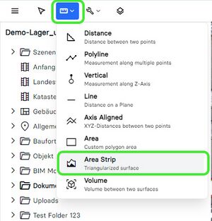 An Area Strip measurement allows you to measure the area of a triangulated surface.