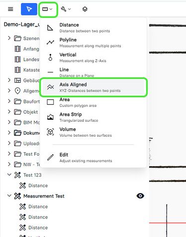 While the measurement remains unsaved, adjustments can be made at both points. Additionally, other measurements can be selected and edited during this stage.
