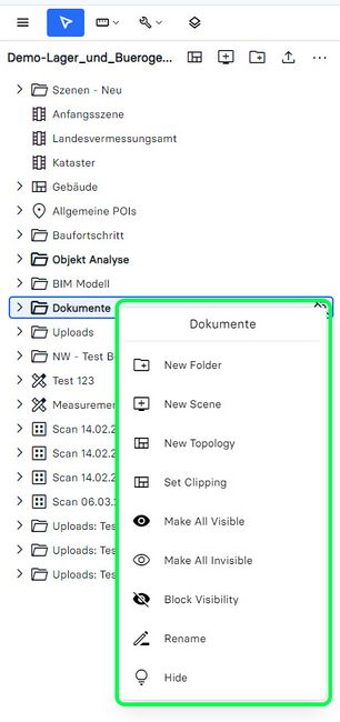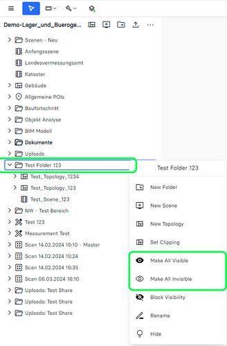 • Within the context menu, you can select "Make All Visible" or "Make All Invisible" by clicking the Left-Mouse-Button
