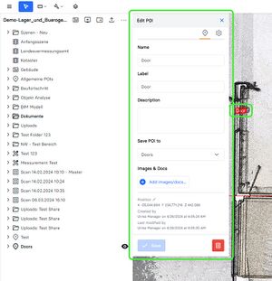 - Choose the POI to which you want to add additional data by pressing and holding the left mouse button for two seconds