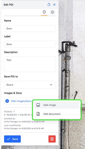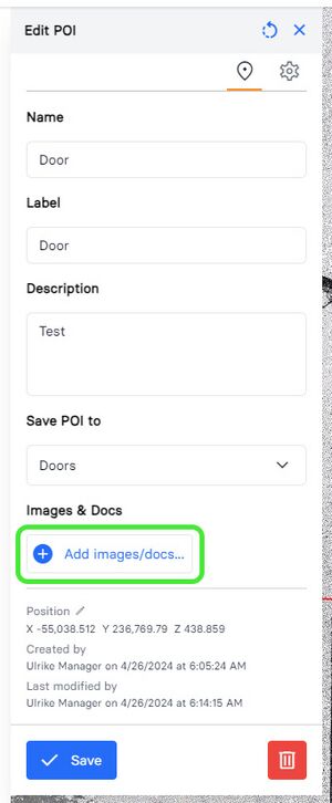 - Drag and Drop uploaded files like photos or documents from the navigation pane into the point cloud or model