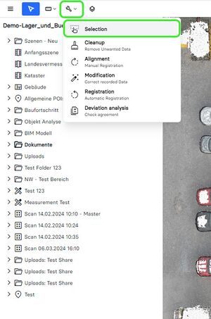 - Choose the tool you want to use to select your desired area of the point cloud: