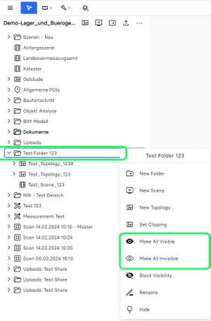 - Within the context menu, you can select "Make All Visible" or "Make All Invisible" by clicking the Left-Mouse-Button