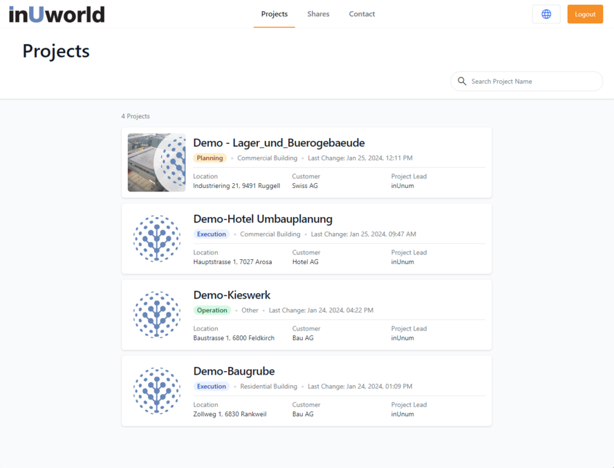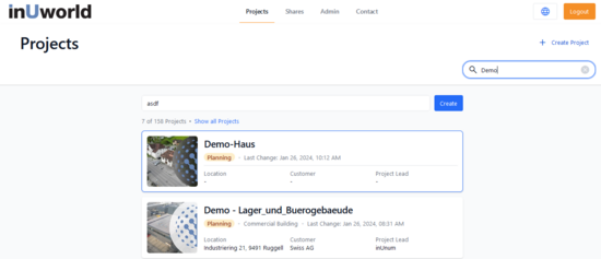 In the project overview, all your self-created projects or projects that have been shared with you are displayed.