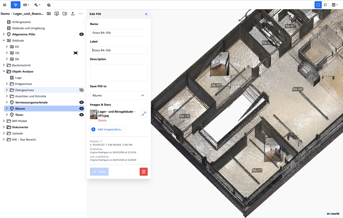 Drag and Dropuploaded files like photos or documents from theNavigation Paneinto thePoint CloudorModel- Press the