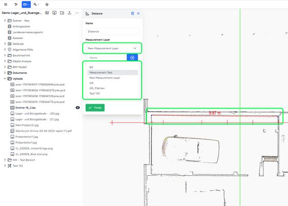 - You can proceed with additional measurements or save the current one by clicking on "Finish"