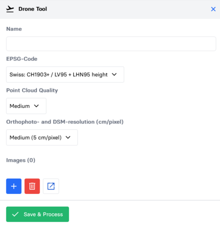The Drone Tool processes several individual images, for example of a drone, into a point cloud, textured mesh and orthophoto.